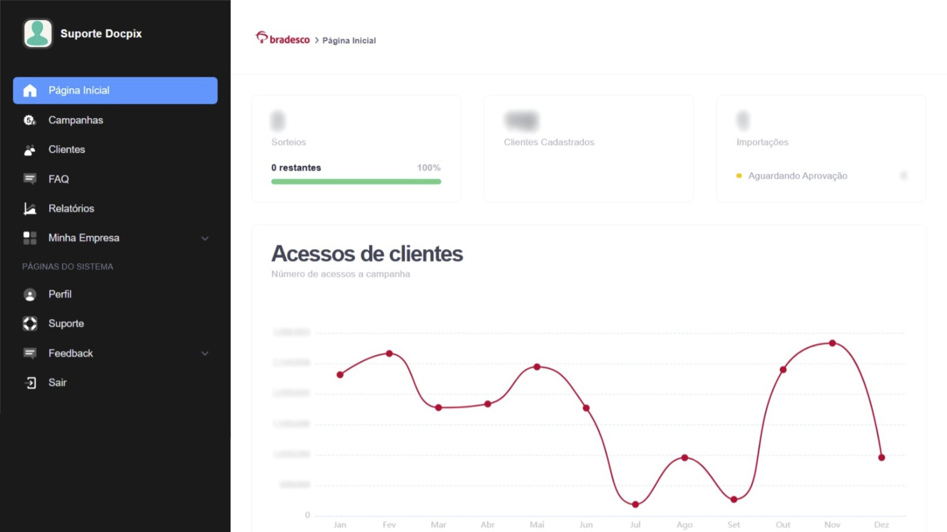 Uma grande instituição do setor financeiro buscava uma solução digital completa para gerenciar campanhas promocionais, sorteios e ações de engajamento com seus clientes, garantindo segurança, transparência e alta capacidade de acesso simultâneo.