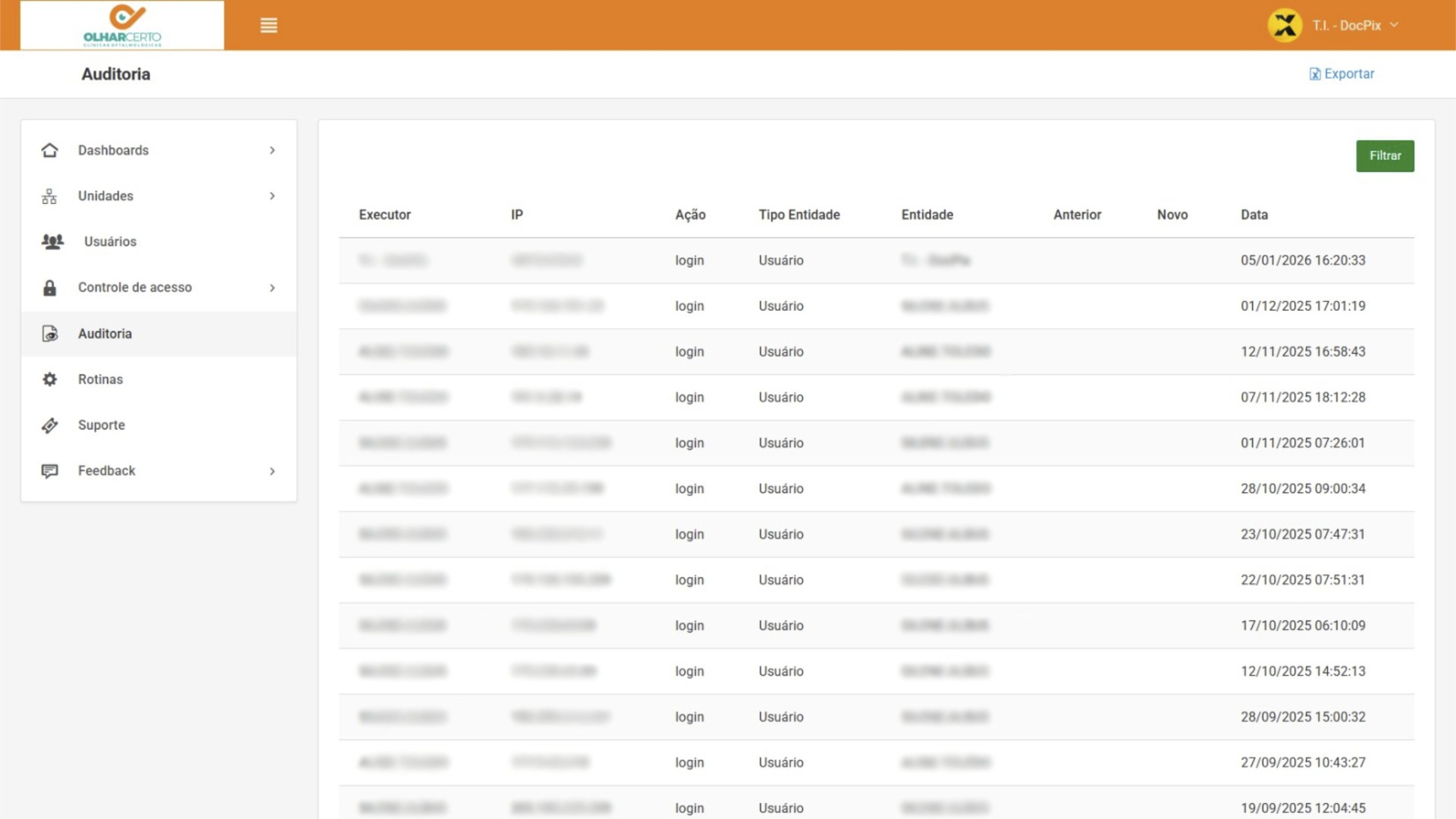 A empresa atua no segmento de saúde, operando por meio de uma rede estruturada de unidades. Com crescimento contínuo e operação descentralizada, havia a necessidade de acompanhar resultados em tempo real, controlar metas, monitorar desempenho comercial e garantir governança sobre acessos e informações.