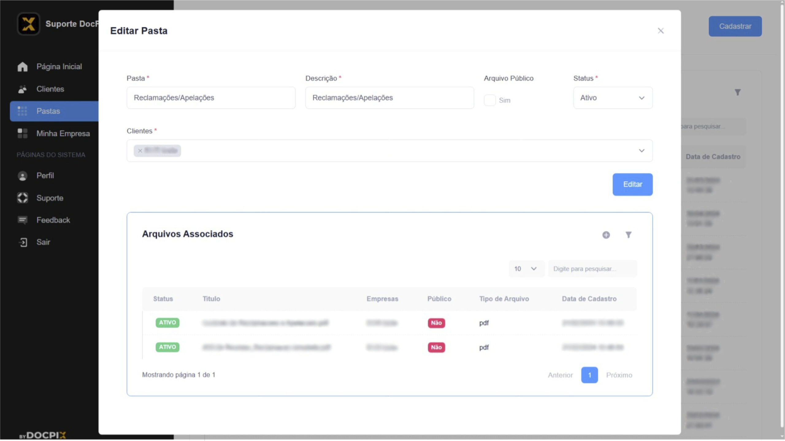 O sistema garante rastreabilidade completa dos arquivos, com controle sobre status, visibilidade e vínculos com empresas específicas.