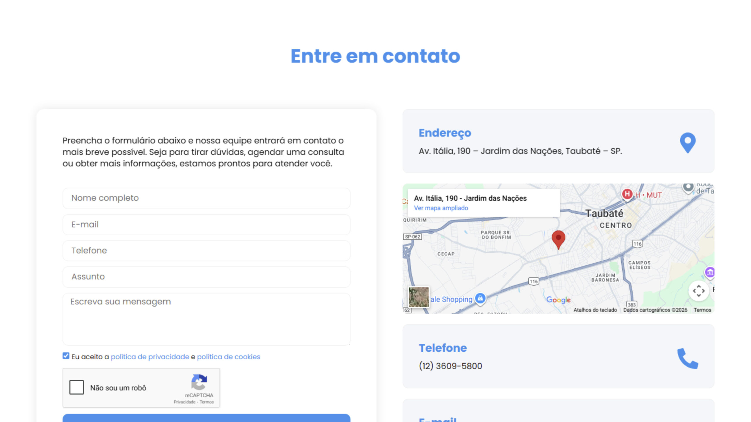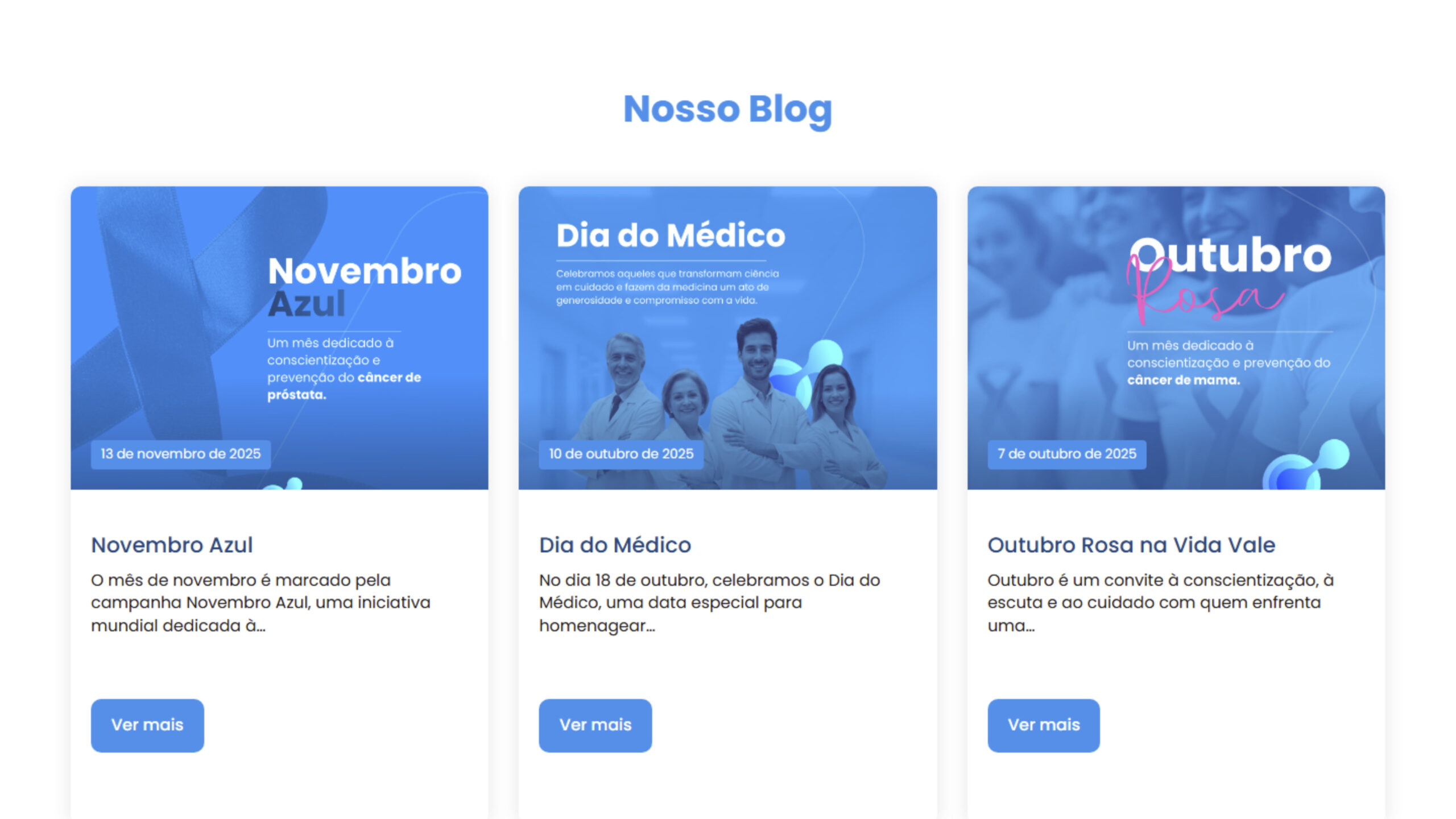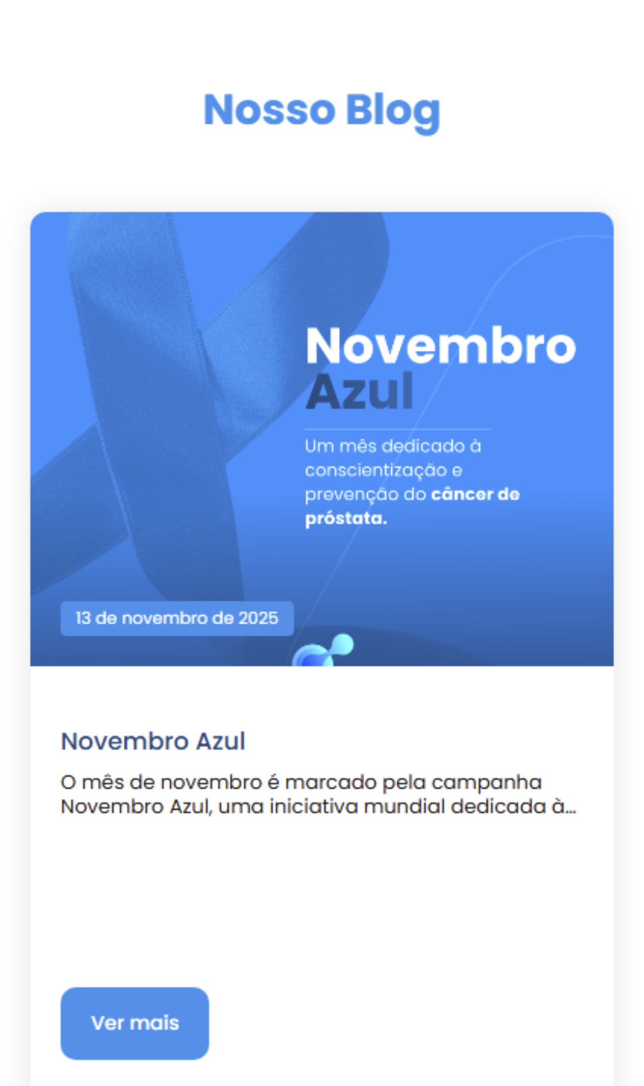 A integração de blog, páginas de exames e áreas informativas contribui para uma comunicação clara, educativa e alinhada às necessidades dos pacientes.