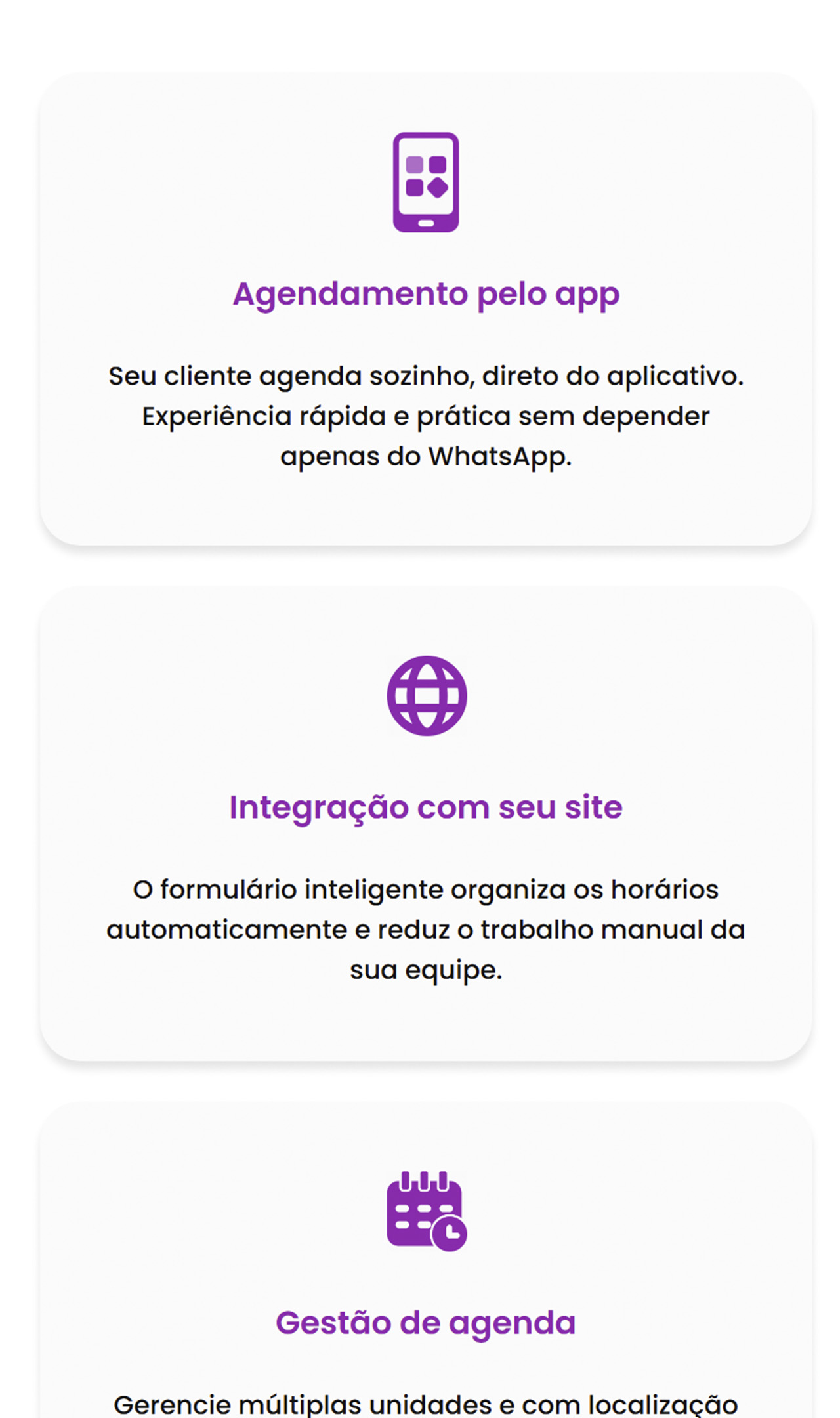 O design foi planejado para transmitir de forma direta a mensagem central: praticidade e organização nos agendamentos.