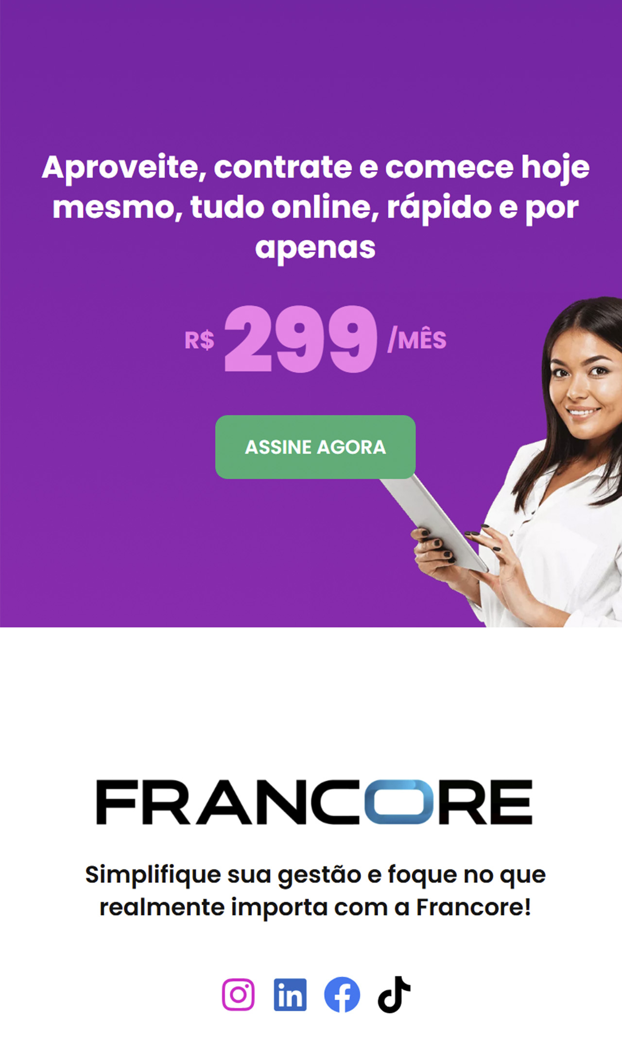 O plano premium com preço competitivo foi destacado em seções estratégicas, reforçando o chamado para ação com botões de “Assine agora”.